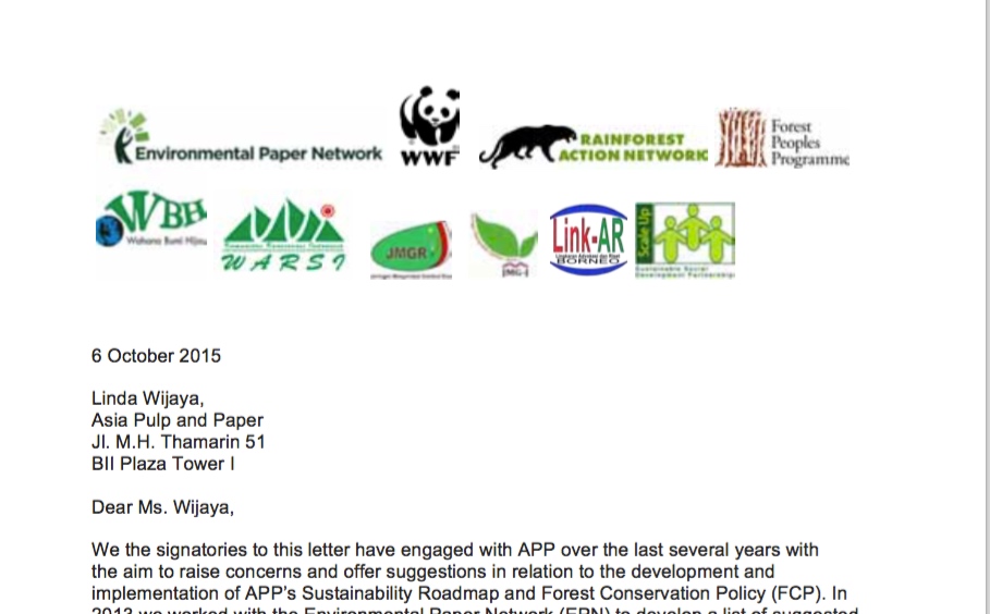 NGOs send a letter to Asia Pulp & Paper: urgent a reform of APP structures and practices