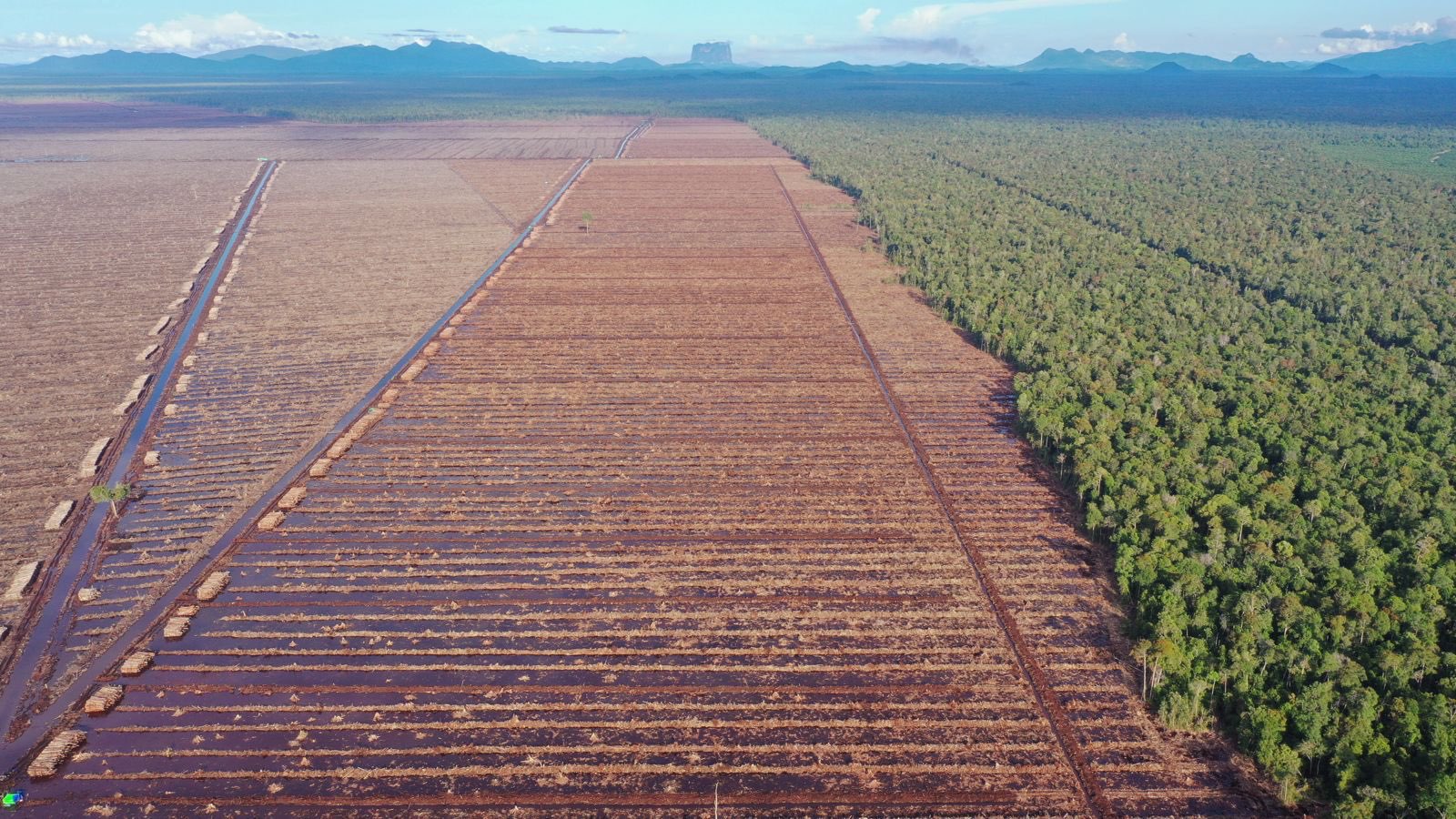 Aerial image showing deforestation on carbon-rich peatlands in PT Mayawana Persada’s pulpwood concession, July 2023 © Auriga Nusantara
