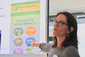 Her colleague, Anne Pernick, from the USA, reported on paper-saving initiatives from North America. Some of the areas that have been a focus have included receipt paper, copy paper, junk mail and phonebooks, and coffee cups. But packaging is the largest volume of paper use and getting increasing focus. Shifting of cardboard recycling from retailers to individual residential homes due to e-commerce is also part of the current challenges in the US recycling system. Young people today want sustainable packaging, and the industry knows that. With their marketing, the paper manufacturers are encouraging the misperception that paper is a harmless material with a low ecological footprint. In a campaign by the US Paper and Packaging Board (an association of paper manufacturers), this perception is specifically reinforced. We should get out of the discussion about whether plastic or paper is worse and instead simply say goodbye to the disposable idea, says Pernick. Anne also noted how EPN supports work on other aspects of choosing the most responsible paper, including recycled fiber content, avoiding endangered forests, well-managed forest fiber, alternative fibers, respect for human rights, etc.